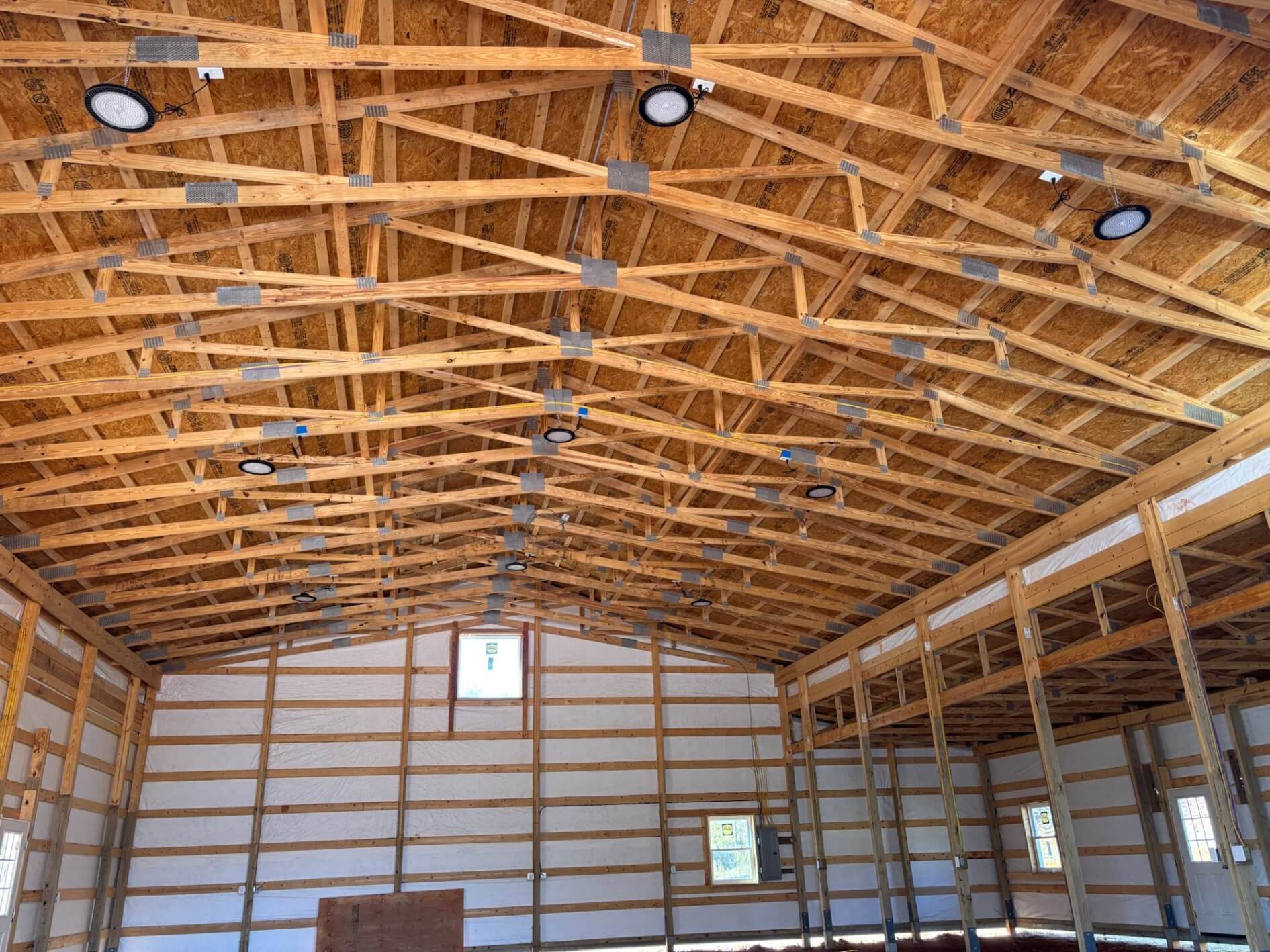 New 200 amp electrical service, wiring and high bay LED lights for a barn in Bostic NC.